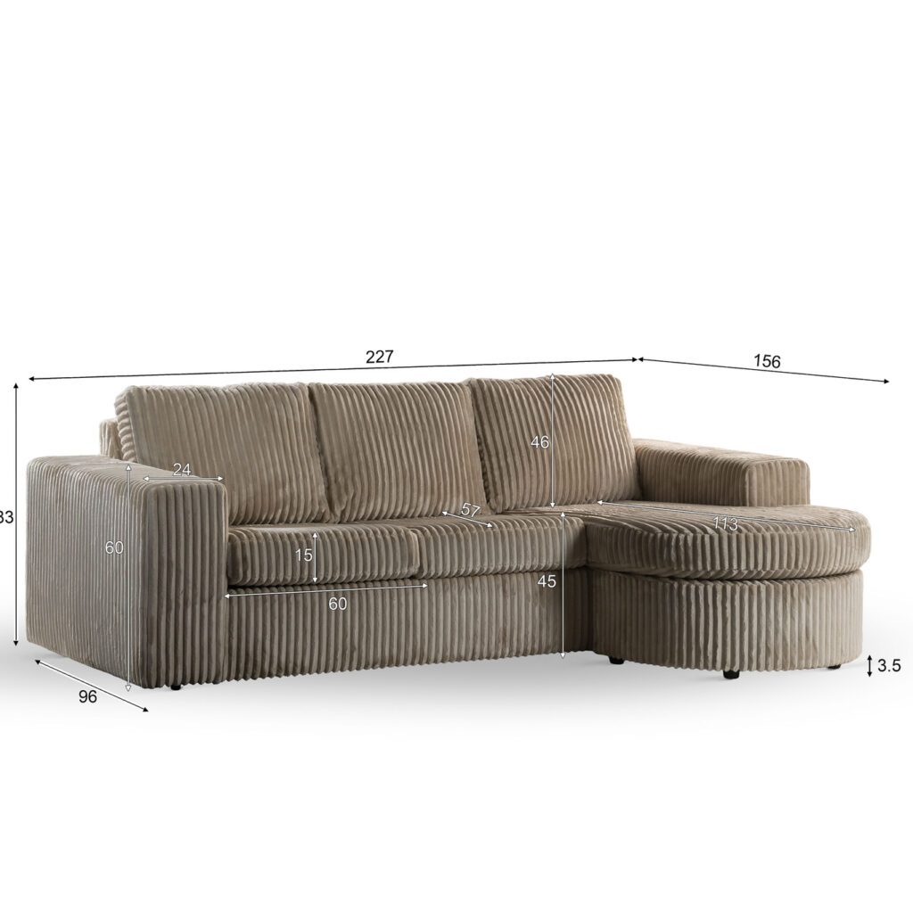 3 zits bank CL L+R, stof Tillia 03, L460 beige