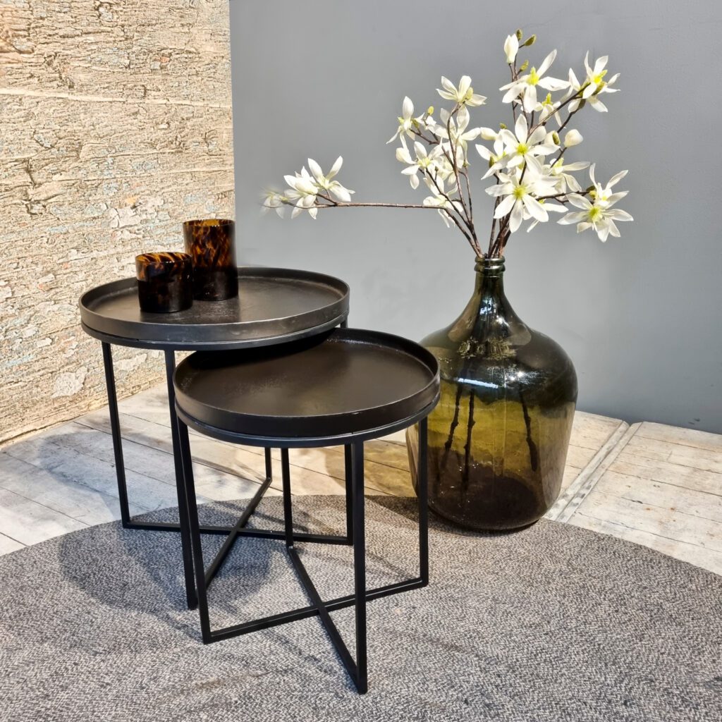 De bijzettafel set Lieke is een elegante toevoeging aan je interieur. Gemaakt van hoogwaardig brons en gegoten aluminium, stralen deze bijzettafels niet alleen duurzaamheid uit, maar voegen ze ook een vleugje verfijning toe aan elke ruimte. De set bestaat uit meerdere bijzettafels die perfect op elkaar aansluiten en flexibel te plaatsen zijn. Het brons geeft de tafels een tijdloze uitstraling en het gegoten aluminium zorgt voor stevigheid. Of je ze nu naast de bank plaatst of als individuele accenten gebruikt, de bijzettafel set Lieke voegt stijl en functionaliteit toe aan je woonruimte. Dit super leuke setje van 2 is gemaakt van brons en gegoten aluminium. De bladen kun makkelijk eraf pakken zodat je een soort van dienblad krijgt.