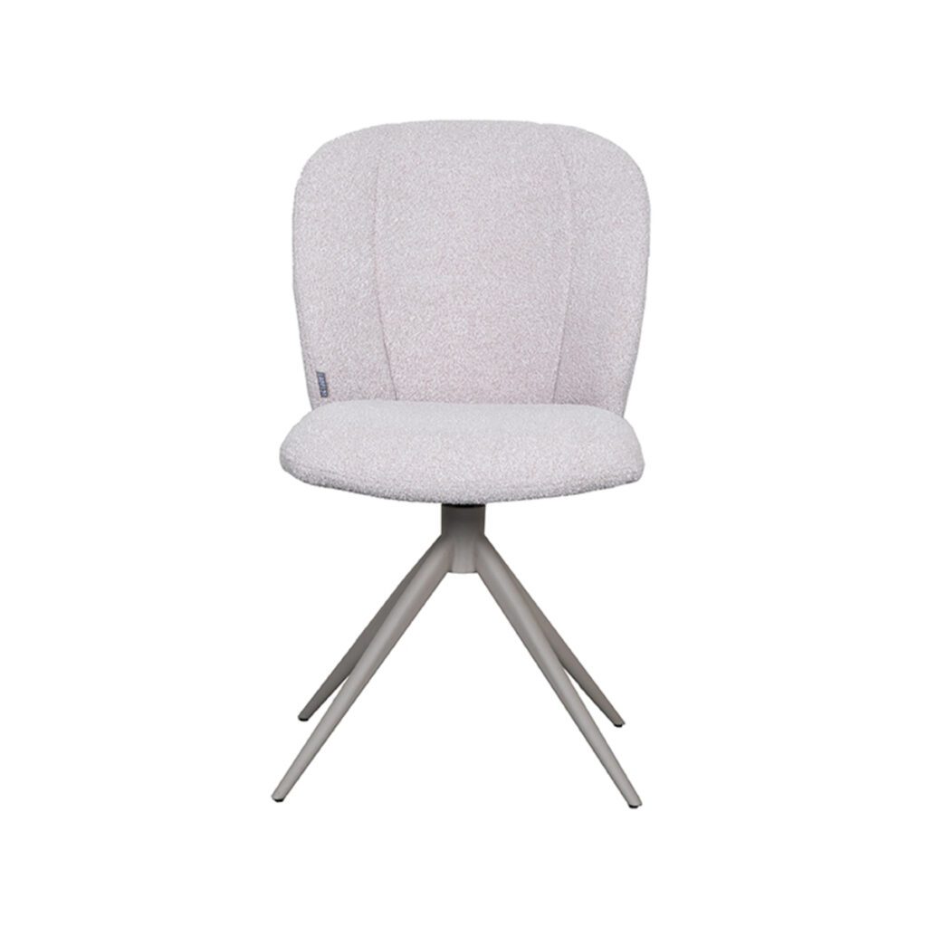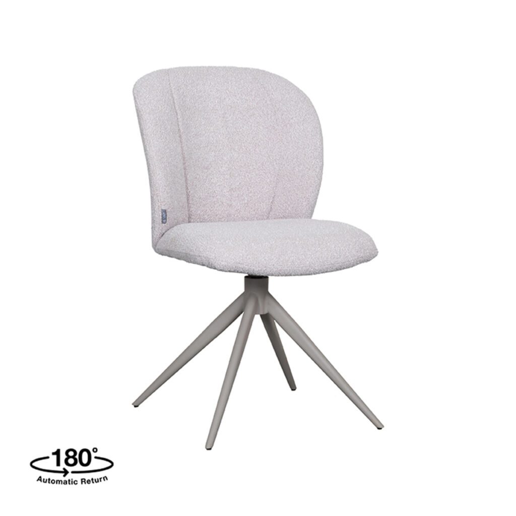 Eetkamerstoel Kimo van LABEL51 combineert moeiteloos comfort met een elegant en eigentijds design, waardoor deze stoel een ideale keuze is voor verschillende interieurstijlen. De stoel is bekleed met Naturel Boucle, wat een zachte en uitnodigende sfeer creëert.