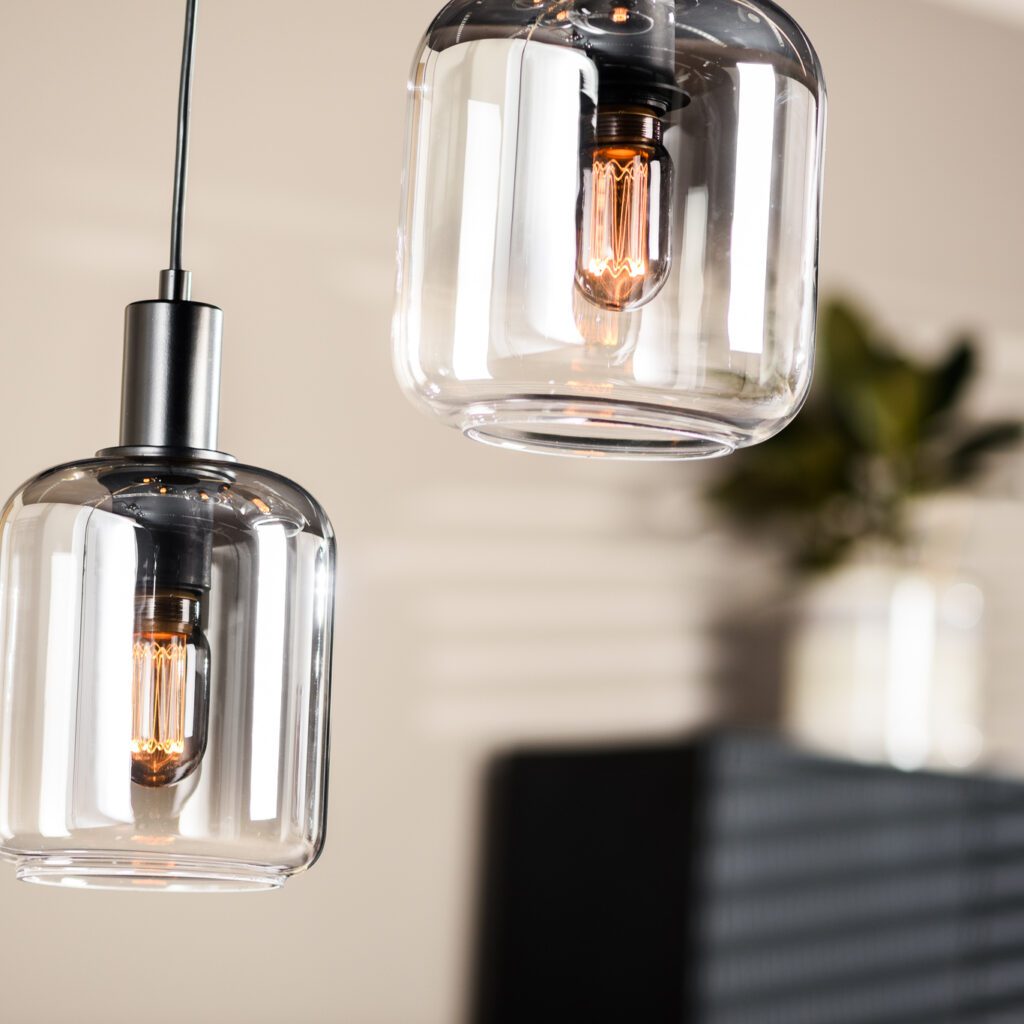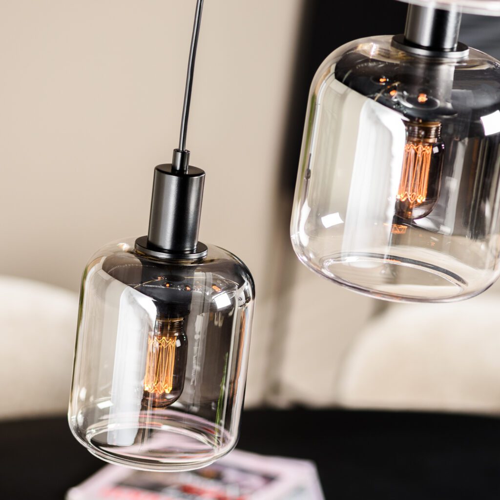 Hanglamp Aurora: Een symfonie van elegantie en moderniteit. Deze prachtige hanglamp met 5 lichtbronnen en rokerig glas voegt een vleugje mysterie toe aan elk interieur. Met zijn eigentijdse design en subtiel tintelende lichtstralen, betovert de Aurora niet alleen de ruimte, maar creëert ook een sfeer van verfijning. Laat je interieur stralen met de hanglamp Aurora.