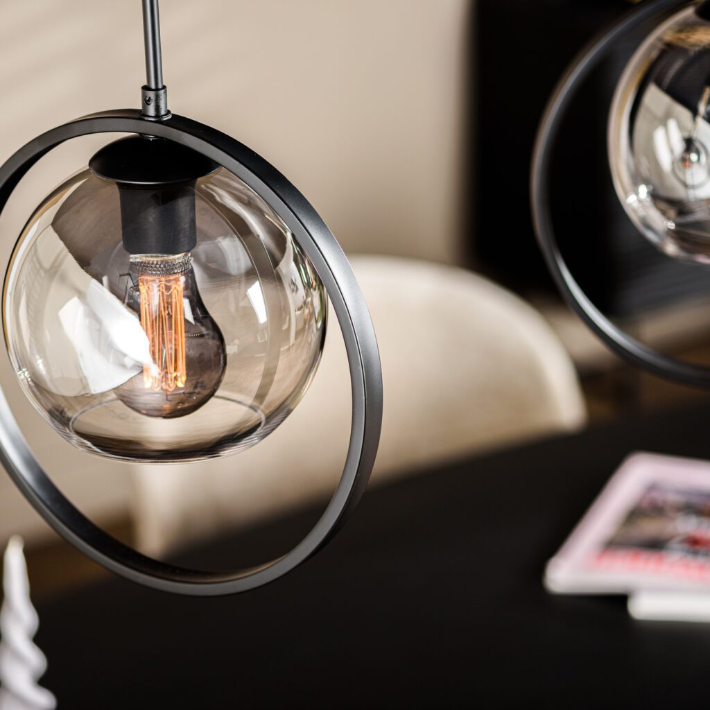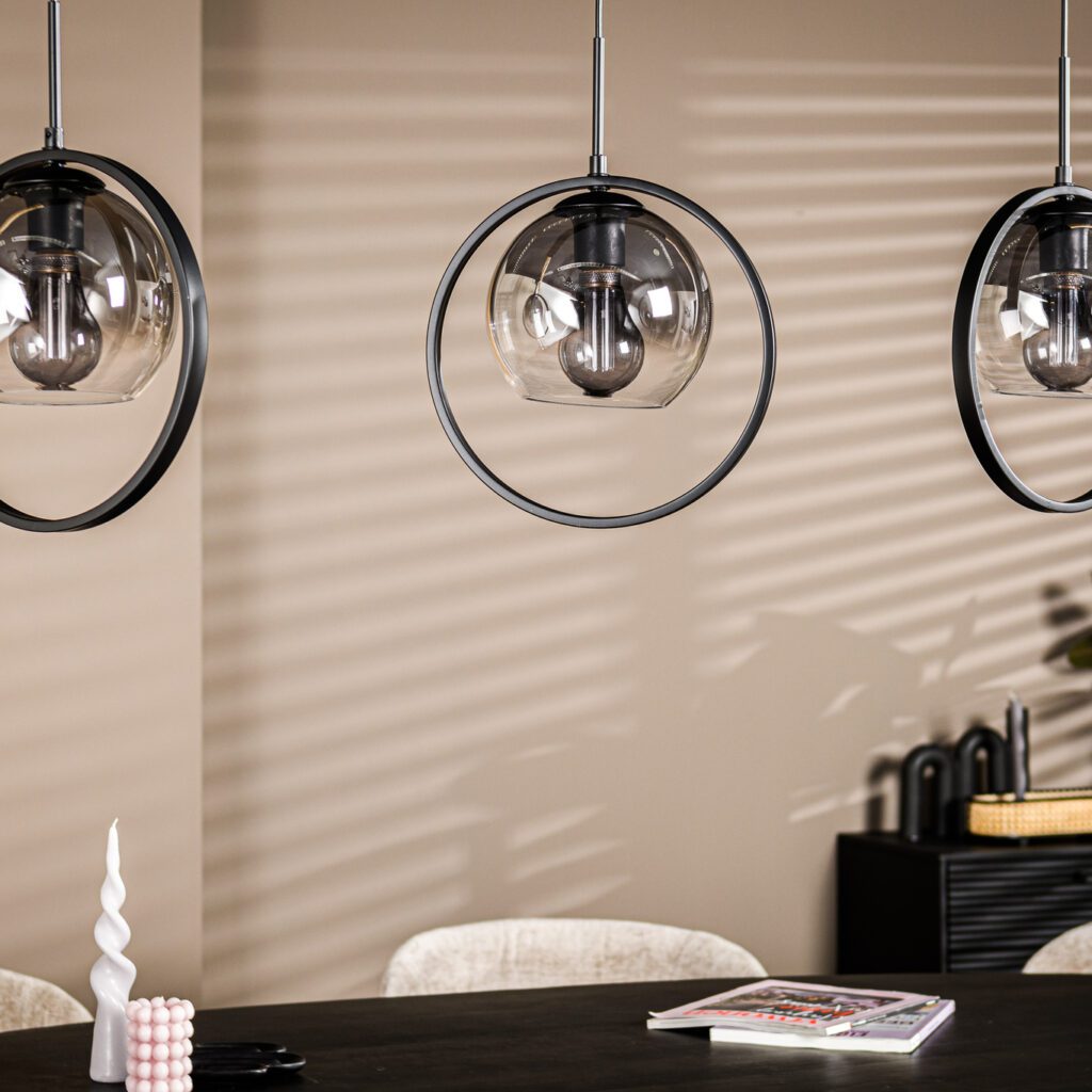 Hanglamp Dazzle: Een symfonie van elegantie en modern design. Deze 3-lichts hanglamp met smoke glazen kappen is een ware blikvanger in elke ruimte. Met zijn slanke en verfijnde ontwerp voegt Dazzle een vleugje eigentijdse allure toe aan je interieur.