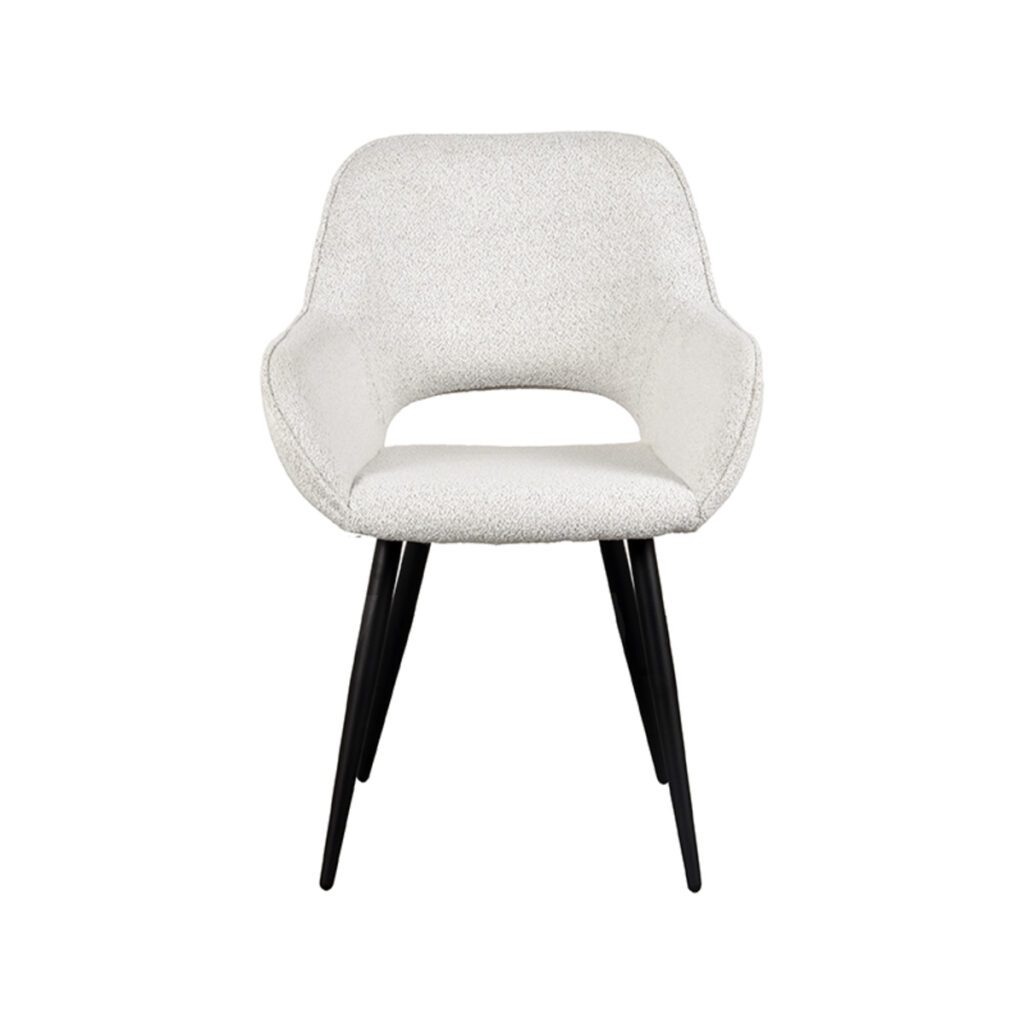 Eetkamerstoel Fer van LABEL51 is een prachtige armstoel uitgevoerd in champagne bouclé waar comfort en verfijning samen komen. De mooie zitting met een speelse uitsparing in de rugleuning in combinatie met de fraaie zwarte poten maken Fer tot een topper in zijn segment.