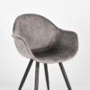 Eetkamerstoel Forli, uitgevoerd in grijs kleurig fluweel heeft een zeer luxe en comfortabele kuip voorzien van elegante rondingen en armleuningen. De prachtige duurzame basis als kuip gestoffeerd met het mooiste fluweel zorgt voor een comfortabele, stevige zit. Forli is in het bezit van licht uitlopende poten, uitgevoerd in zwart metaal, waardoor de stoel stevig op de grond staat en ook nog eens een leuke speelse touch krijgt.