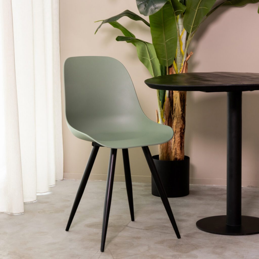 Eetkamerstoel Monza, uitgevoerd in forest polypropyleen heeft een zeer luxe en comfortabele kuip voorzien van elegante rondingen. Het materiaal is duurzaam en zeer gebruiksvriendelijk. Tevens is Monza in het bezit van licht uitlopende poten, uitgevoerd in zwart metaal waardoor de stoel stevig op de grond staat en ook nog eens een leuke speelse touch krijgt.