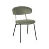 Eetkamerstoel Zack is uitgevoerd in forest ribcord, een groenkleurige aaibare stof. Zack bestaat uit een ronde, aparte rugleuning en zitting, die verbonden zijn door een prachtig doorlopend zwart frame, voorzien van een handgreep op de achterkant van de rugleuning. Dit maakt Zack extra functioneel waardoor het aanschuiven van deze eetkamerstoel nog makkelijker wordt. De vier zwarte poten zorgen voor extra stabiliteit en een luchtige look.