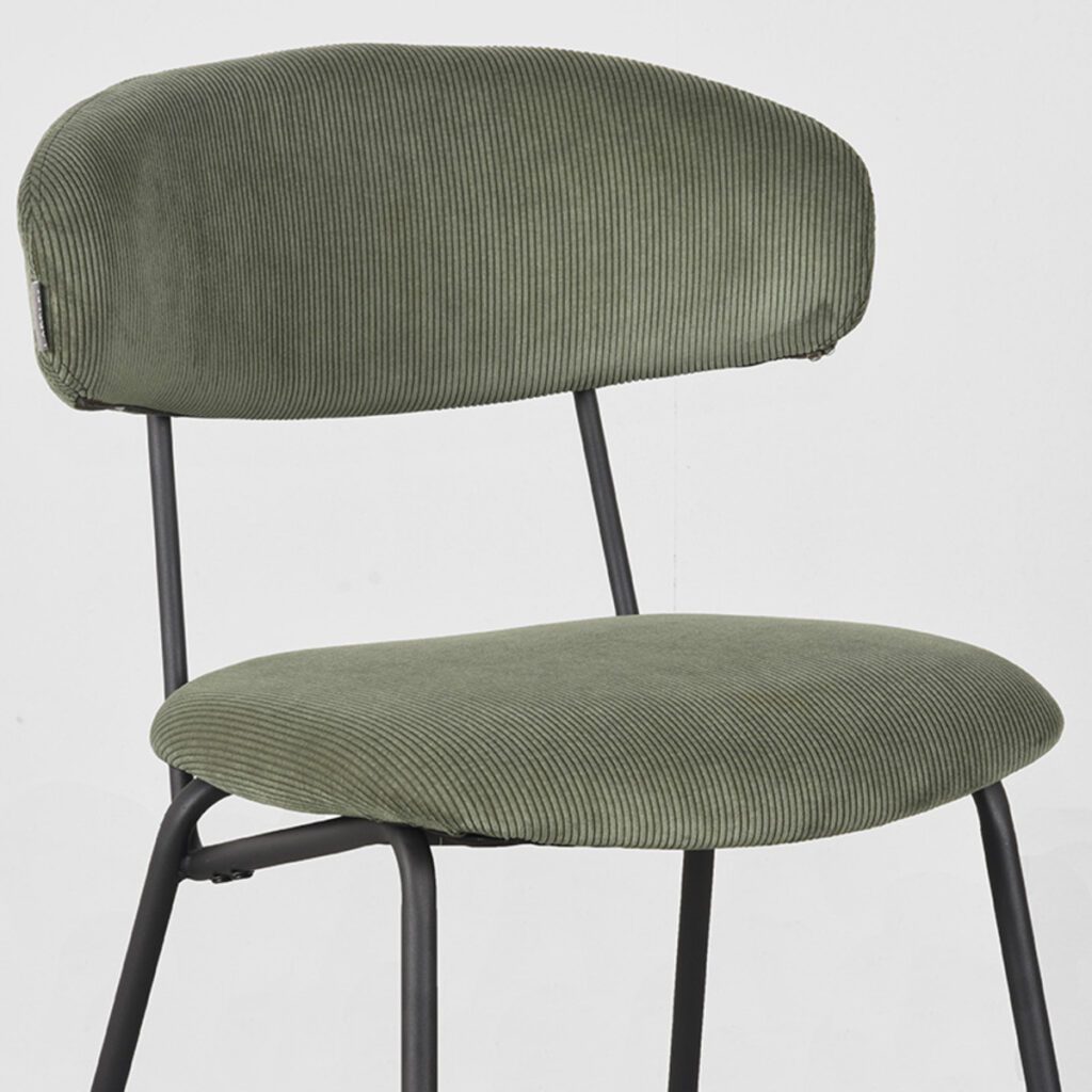 Eetkamerstoel Zack van LABEL51, uitgevoerd in forest ribcord is een prachtige en elegante stoel. De aparte zitting en rugleuning met doorlopend frame zorgen voor extra veel comfort en stijl. Zack is uniek en toegankelijk, wat het de perfecte stoel maakt voor aan iedere eettafel!