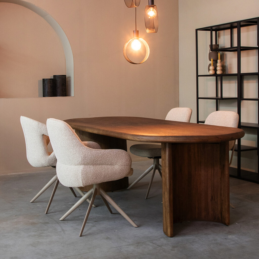 Eettafel Vito straalt sfeer uit door zijn charmante organische design. Met eettafel Vito kun je alle kanten op! Vito is ontzettend leuk te combineren met andere meubels en is in verschillende stijlen te plaatsen. Houd je van eenheid? Dan is salontafel Vito echt iets voor jou! Bekijk salontafel Vito op de website.