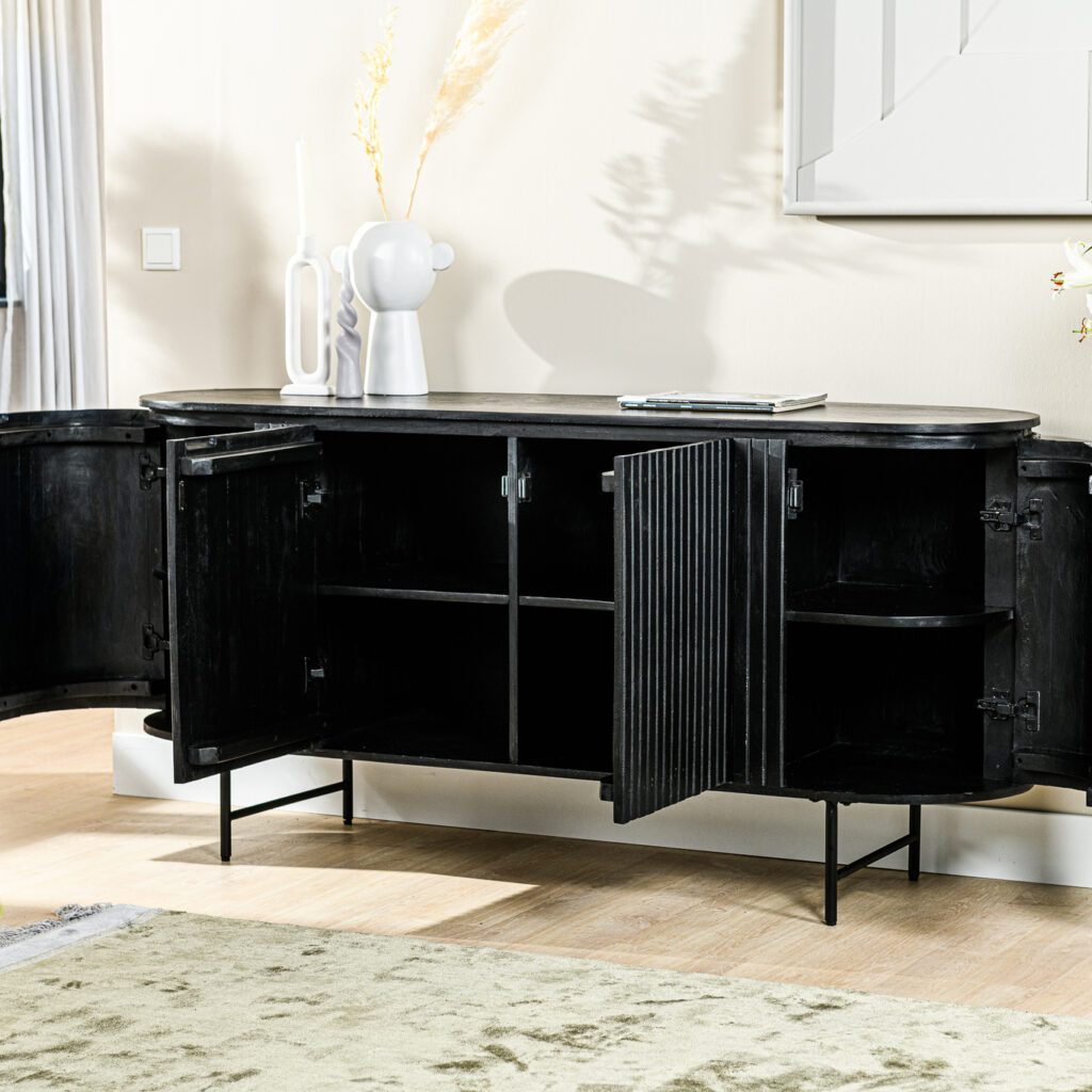 Dex biedt niet alleen een verfijnde esthetiek, maar ook een slimme oplossing voor opbergruimte. Met maar liefst vier ruime kastjes is er voldoende plek voor al uw media-apparatuur, accessoires en meer, terwijl het toch een georganiseerd en opgeruimd gevoel behoudt in uw woonkamer.